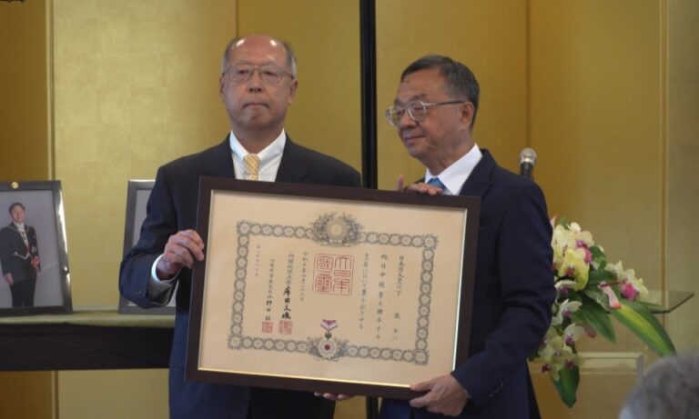 日本台灣交流協會高雄事務所長奧正史,轉贈日本政府「旭日中綬章」給丁澈士教授,屏東科技大學名譽教授丁澈士研究日本技師鳥居信平所建的二峰圳超過30年,在許多國際研討會上發表研究成果,發揚與環境永續共存的水利技術,也因此促進日本與台灣間的相互理解。