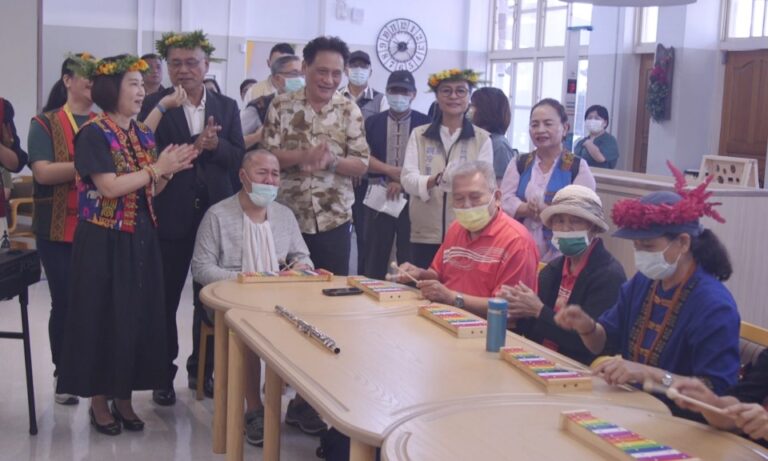 長輩們敲著樂器口唱詩歌歡迎來訪的貴賓,三地門共融生活中心歷經1年8個月的改造,設置包含生活機能訓練、社區支援整合、日間照顧、失智據點、A級社區整合服務中心、生活創藝工坊六大服務空間,讓照顧者與被照顧者可以相互支援,撐起社區生活互助網,接住部落裡的每個人。