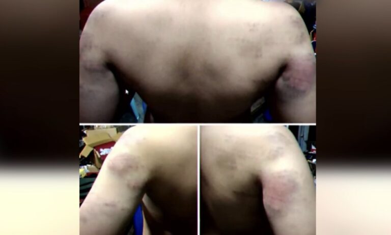 照片中男童手臂上滿是紅腫瘀青,讓人看了相當不忍。