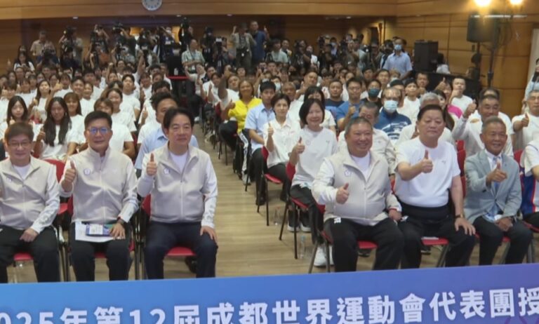 體育 世運會 119選手出征成都世運會 賴總統親授旗勉勵 33 我國運動代表手們,即將出征第12屆成都運動會,而25日這天也盛大舉行授旗典禮,就是為了將滿滿的祝福與鼓勵,傳遞給所有的代表選手們。 2025-07-25 19:48