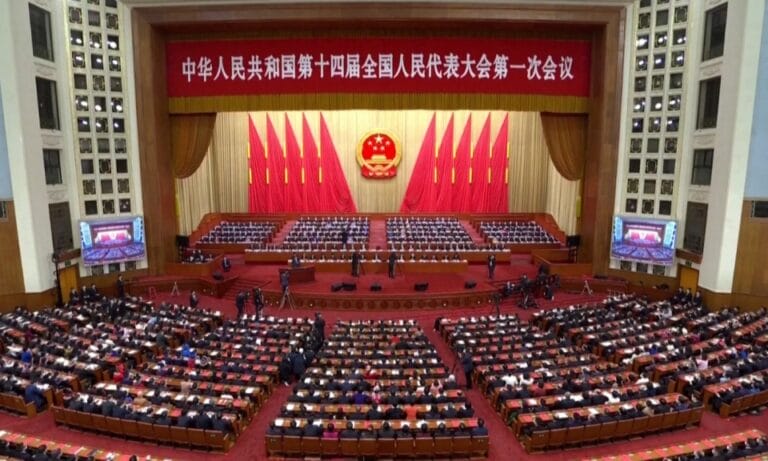 中國第14屆全國人大一次會議在一片掌聲中,連任第3任任期的中國國家主席習近平,上台發表閉幕感言, 中國國家主席 習近平:「要貫徹新時代黨,解決台灣問題的總體方略,堅持一個中國原則和九二共識,積極促進兩岸關係和平發展。