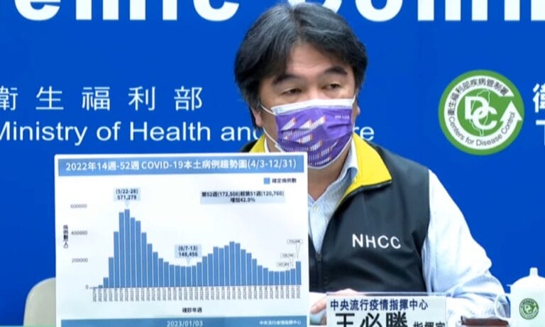 中央流行疫情指揮中心指揮官王必勝表示:「在前一周是比起來是增加42.9%,大家也可以看到這個柱狀圖,忽然之間就上去一大截,看起來這個疫情它的升高是有加速,而且加速的速度還蠻快的。