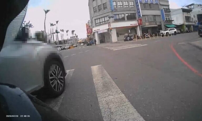 行車紀錄器清楚拍到,一臺休旅車沒打方向燈直接右轉,後方機車緊急煞車差點撞上相當危險,而機車騎士也立即上網公開影片,譴責違規汽車駕駛。