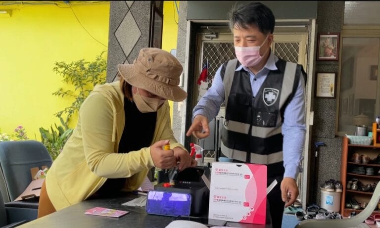 使用採檢棒提取鼻腔黏膜,並在試管內液體攪拌,透過機器螢幕畫面步驟提示,來完成家用版的PCR檢測,過程看似簡單,但是每項動作環節都必須嚴謹,不容有誤,否則就會判別出錯,不過熟能生巧,台北市旅館同業公會,特別在達仁鄉土坂部落文健站,安排教育訓練。