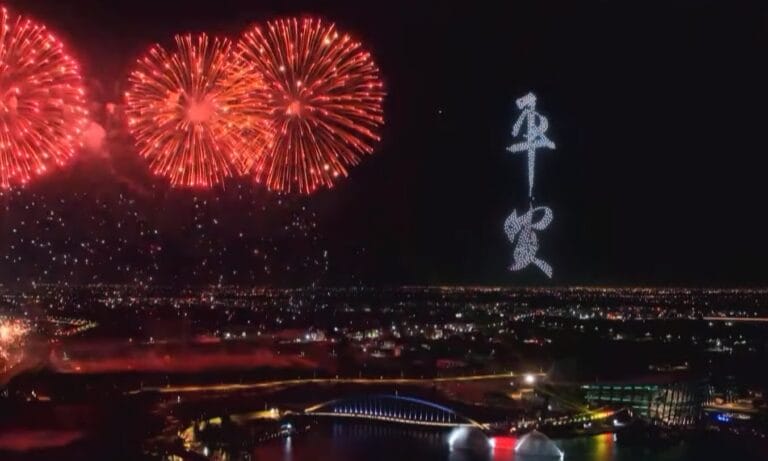 生活 都會 光雕 嘉義 無人機 焰火晚會 雙十國慶 雙十國慶焰火秀 結合水舞光雕、無人機閃耀夜空 65 國慶焰火晚會主持人說:「接下來要呈現出來的是什麼圖樣了嗎?順著這個筆畫,我們慢慢地看下來要送給台灣,平安兩個字。 2022-10-11 12:05