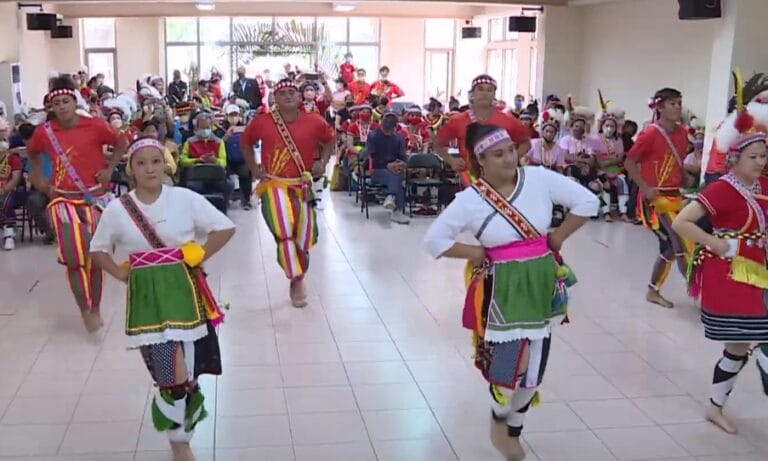 族人隨著音樂舞動手腳,跟著節奏擺動身體。