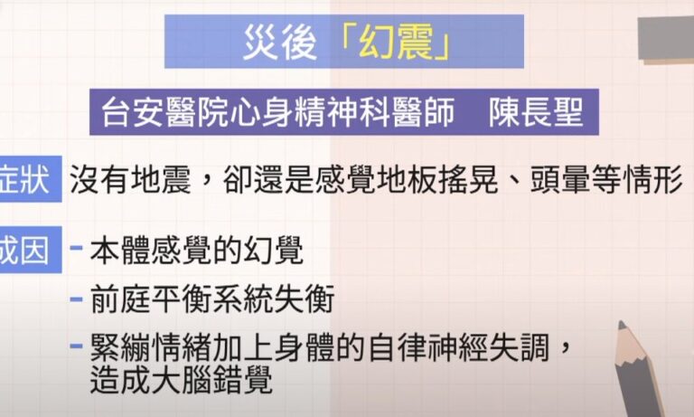社會 醫療 風災 0403地震 創傷後壓力症候群 幻震現象 沒地震感覺還在搖? 醫生:症狀逾一月快就醫 309 大片土石滑落,塵土飛揚,一旁民眾嚇到哭了出來,而這災難場景更讓許多人餘悸猶存。 2024-04-04 19:26