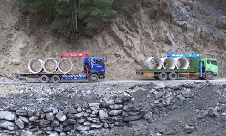 15日下午不少大型工程車輛進入尖石後山。