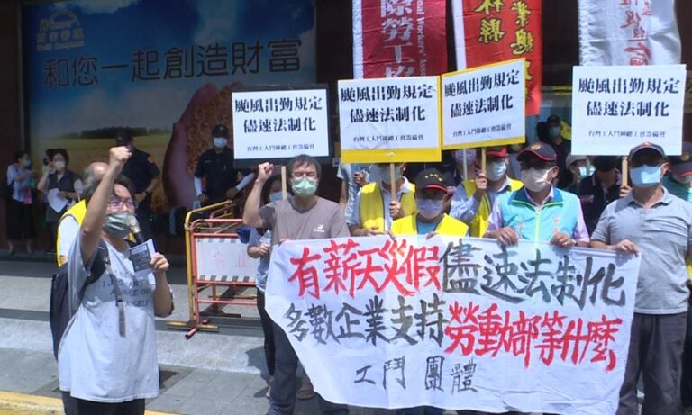 政經 生活 勞動團體 勞工 天災 放假 薪水 颱風 勞團籲有薪天災假法制化 勞部:應審慎討論 10 針對有薪天災假法制化訴求,勞團指出,颱風天出勤勞工,僅有2成有領到雙倍薪與獲得補休。 2022-08-11 19:15