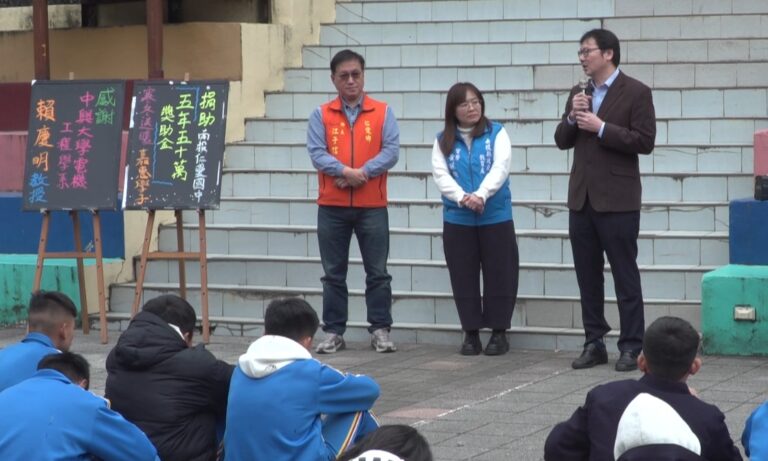 教文 仁愛國中 南投仁愛鄉 獎助學金 賴慶明 中興大學教授寒冬送暖 捐助仁愛國中50萬元 1547 中興大學教授賴慶明,以個人名義捐款五十萬元給仁愛鄉仁愛國中,學校舉辦簡單隆重的受贈儀式,也頒發感謝狀給教授,藉此表達全校師生十二萬分的感謝。 2026-01-19 19:38