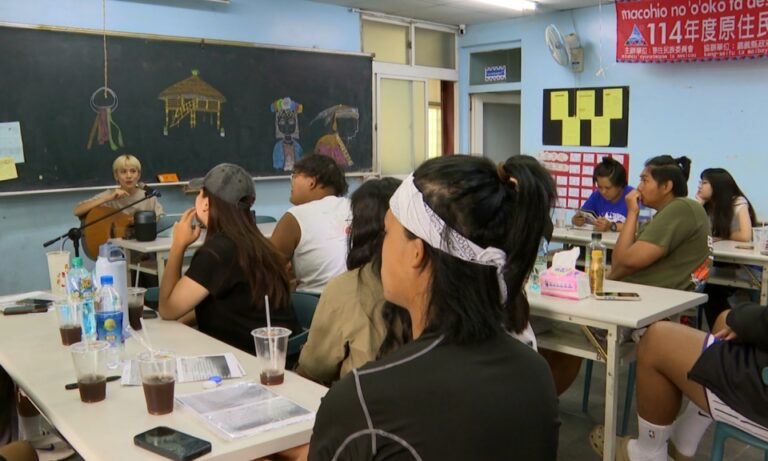 教文 卡拉鄒農學生會 山美部落文化學習 東華大學 前進部落學習 東華卡拉鄒農學生會訪山美 16 彈著吉他,鄒族創作歌手Naa’u用歌聲,與臺下學生分享自己的族語創作,而學生們也拿起手機認真記錄,這天是東華大學卡拉鄒農學生會暑期活動「部落有教室」的第四天課程。 2025-09-06 19:16