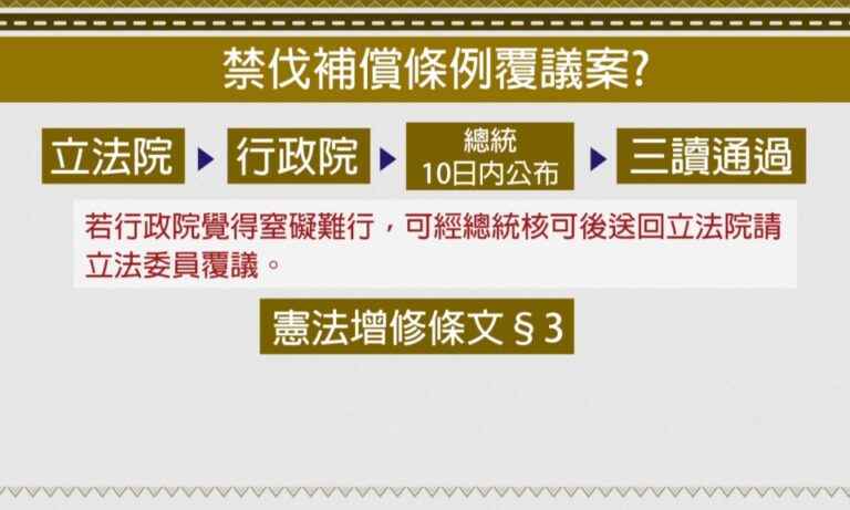 下一件覆議案? 禁伐補償條例三讀遲未公告