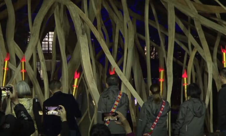 2023台灣燈節在台北、將在本周日盛大展開,台北市府也在1日宣布開始燈會的試營運, 其中包含了光展區、未來展區、中央展區、以及企業響應燈區等六大展示區 ,然而,在松山文創園區的源展區內能看見台灣多元文化的燈飾,除了有客家、新住民之外,也有不少原住民族藝術家的作品參與其中,像是來自下賓朗部落的卑南族藝術家瑪籟,作品以「讓心跳著」作為主題,在展區安靜的跳動。
