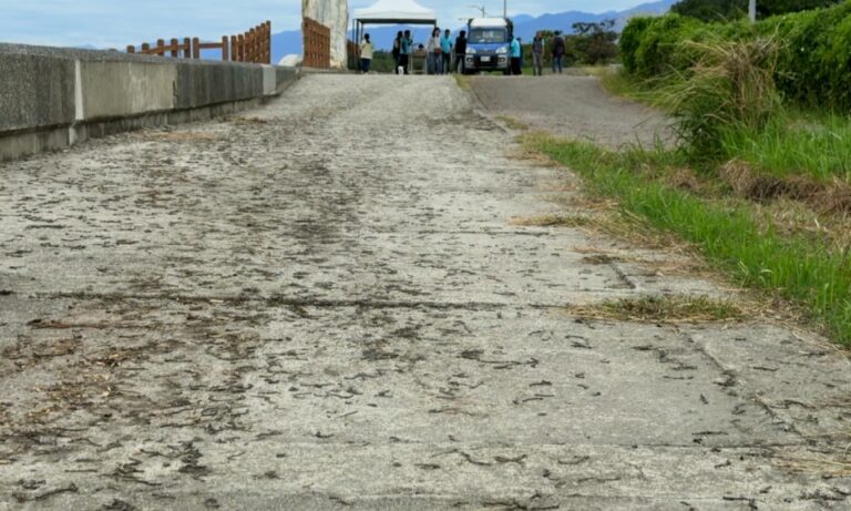 東北季風增強,各種廢棄物也被吹到海灘上,台東專科學校校友11月30日發起海濱公園淨灘活動,卻也意外發現500多公尺的公園步道,竟出現了滿滿的蚯蚓以及乾枯的蚯蚓屍體。