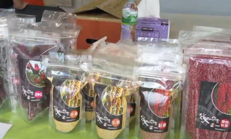人潮來來往往,一包包來自後山的紅色寶石-紅藜,陳列在桌上。
