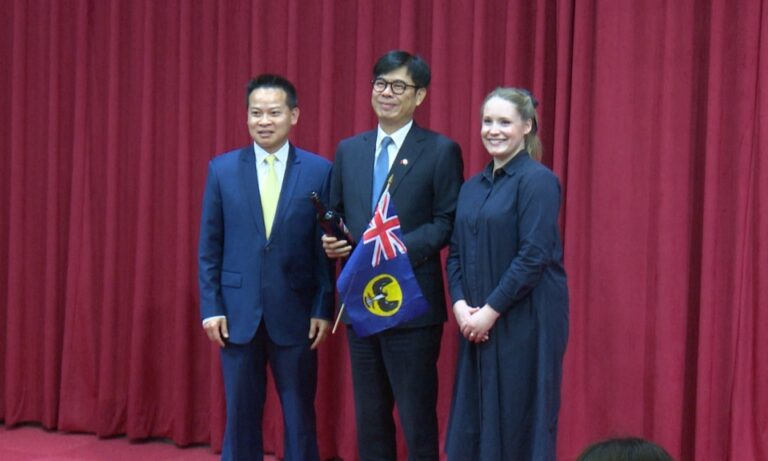 國際 南澳州議會跨黨派友台小組 原民事務 原民權利 台澳友好 南澳州議員團造訪高雄 盼拓展多領域合作 4 對著市長胸上的「台澳友好胸針」豎起大拇指比讚,澳洲的「南澳州議會跨黨派友台小組」從4日來台參訪,9日來到港都高雄,由市長陳其邁率領各長官親自接待。 2023-06-09 19:18