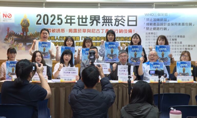 政經 生活 世界無菸日 台灣拒菸聯盟 新型菸品管制 5/31世界無菸日! 民團三大訴求籲管制新型菸品 33 5月31日為每年的世界無菸日,台灣拒菸聯盟於26日召開記者會,向政府提出三大訴求:「禁止加味菸品」、「禁止網路行銷」及「規範產品設計並採素面包裝」。 2025-05-29 12:15