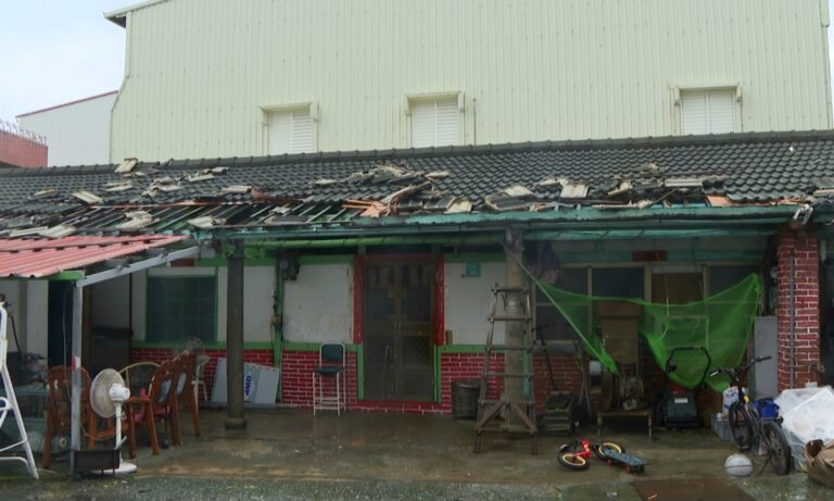 修繕師傅趁著颱風登陸前夕,協助居民加固屋頂、修補牆面;颱風鳳凰來勢洶洶,路徑又近似今年重創南台灣的丹娜絲,居民不敢大意,希望在強風豪雨來襲前完成修復。