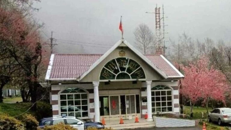 綿綿細雨中,一棟歐式建築被一大片櫻花樹包圍,雲霧繚繞宛如仙境,這裡是台東境內海拔最高的向陽派出所,周邊40棵櫻花樹一夜之間也全都盛開,吸引許多遊客到場賞櫻,如此美景原來是前所長張能為,在十年前親手種下40棵櫻花樹,就為了重現日本時代的自然美景。