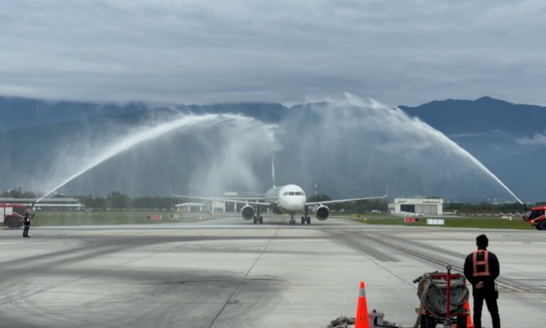台東-金門直飛包機首航 「噴水禮」迎182旅客
