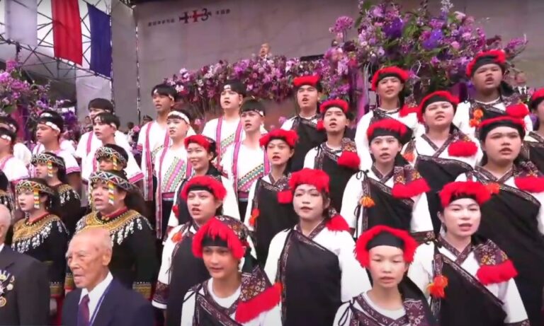 祭典活動 國慶國歌領唱 尼布恩合唱團 古寧頭英雄領唱國歌 「原」聲飄揚國慶大典 79 國歌領唱一開始,由2架黑鷹直升機伴隨護契努克運輸直升機,吊掛巨幅國旗通過觀禮台,展現磅礡氣勢,今年還特別邀請古寧頭戰役的3位老英雄親自領唱國歌,再次呼喚所有國人熱愛國家。 2024-10-10 12:12
