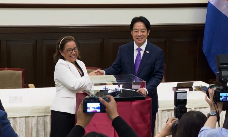 國際 國是訪問 總統海妮 總統賴清德 馬紹爾群島共和國 馬紹爾總統訪台 賴總統軍禮迎賓隆重接待 49 我國南島友邦馬紹爾群島共和國總統海妮來台國是訪問,即使總統府前大雨滂沱,仍以軍禮隆重迎接來自太平洋的朋友。 2025-06-03 19:12