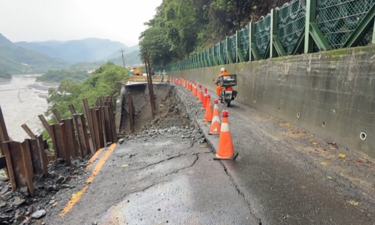 交通 土坂村聯外道路 東68線 路基塌陷 東68線5-6K路基坍 居民險走1.5公尺寬路面 26 機車驚險地行駛在地基塌陷的狹小車道,這是通往台東達仁鄉土坂村唯一的聯外道路東68線5到6公里處,在7月21日受到豪大雨的影響,導致路基有部分嚴重塌陷,隨後連日降雨加劇災情;30日晚間5點左右,路面再次滑落而且面積更大,路面只剩下靠山壁1.5公尺左右的寬度,導致汽車無法進出,勉強只能讓車機來通行。 2025-07-31 19:21