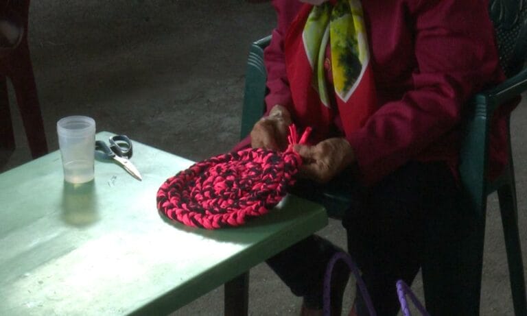 原鄉 生活 光復鄉 坐墊 手做 文健站 因應明天冷空氣抵達 花蓮照顧站耆老一同手製苧麻坐墊 22 兩人互助將預備好的麻繩綁在一起,接著捲曲成圓盤,最後用針線將縫隙固定起來,就變成美觀又耐用的圓盤坐墊,在冬季時節非常實用。 2021-11-21 18:51