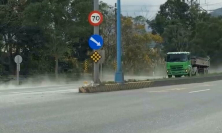 車輛行經台九線、接近馬太鞍溪鋼便橋一帶,現場總是一片灰濛濛。