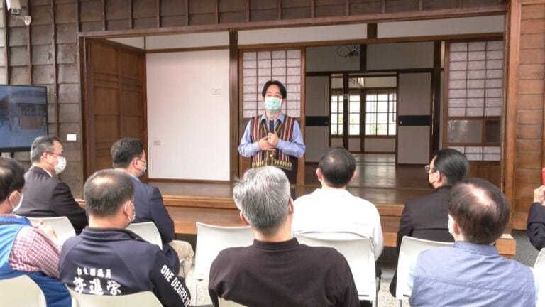 副總統賴清德推開最後一道防颱門,象徵老屋重啟新生。