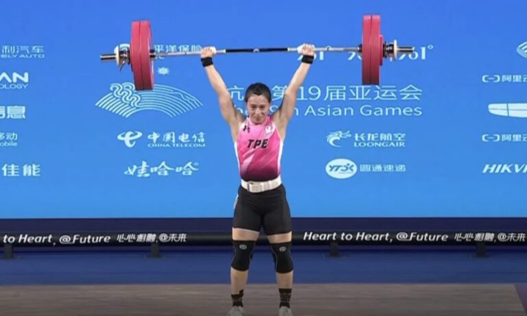 第三度來到亞運舞台的神力女超人,阿美族郭婞淳在杭州帶傷上陣女子59公斤級;首先進行抓舉項目表現是遊刃有餘,第一次試舉接槓之後輕鬆舉起開拔了97公斤;第二次和第三次試舉也陸續順利舉起99和101公斤,帶著笑容完成抓舉,比賽暫時排名第三。