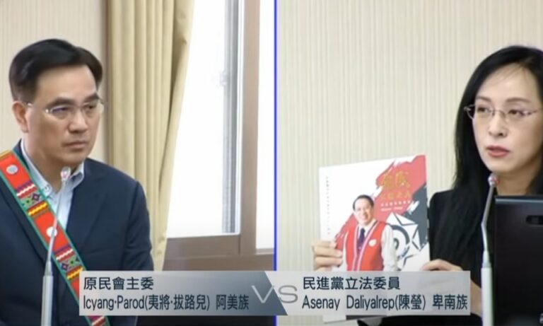 原民會主委 Icyang.Parod(夷將.拔路兒)VS. 國民黨立法委員 許宇甄:「(都已經有八年的成果專刊,為什麼還要為你自己出一份?)自己個人的畢業專刊,跟委員報告在我之前,林江義主委也有出版還有孫大川。