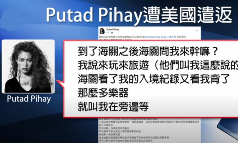 「漂流出口」樂團的BASS手兼主唱布妲菈・碧海(Putad Pihay),日前受邀前往美國巡演,不料主辦單位「小島大歌」卻沒有替她申請工作簽證,布妲菈・碧海因非法入境遭美國,遭到海關監禁17小時,審訊之後立即遣返回台,並永久取消入境資格,而她本人也在網路平台公布事件,表示主辦方要求她以旅遊簽證闖關,但網友們的看法也相當兩極,原住民歌手吳昊恩也公開對事件表達意見。