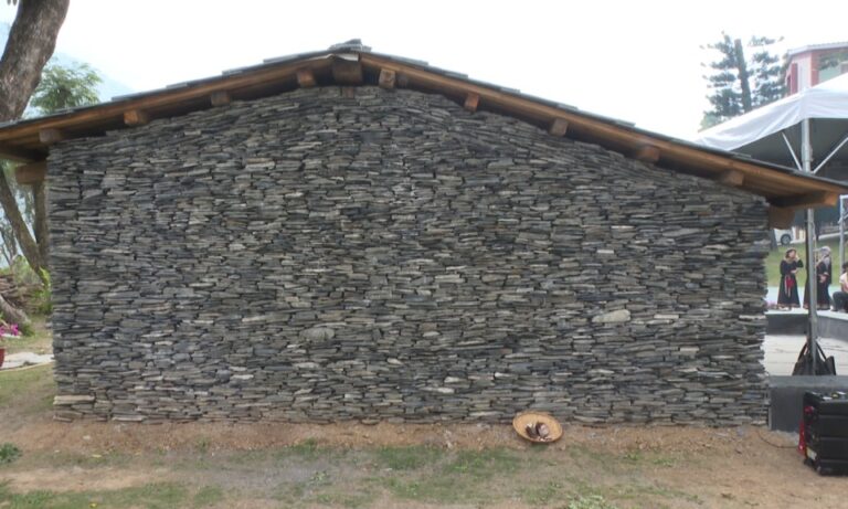 用獵刀切斷樹藤,久美國小布農族卓社傳統家屋,正式落成啟用,家屋從外觀到內部,都展現傳統布農文化的氣息,家屋建造者也表示,各社群的傳統家屋構造其實都不會相差太多,不過有時會在石材選擇上有些許差異,而其中家屋入口也會設計較低的臺階,目的也是提醒族人進去別人家屋時,要時刻保持尊重。