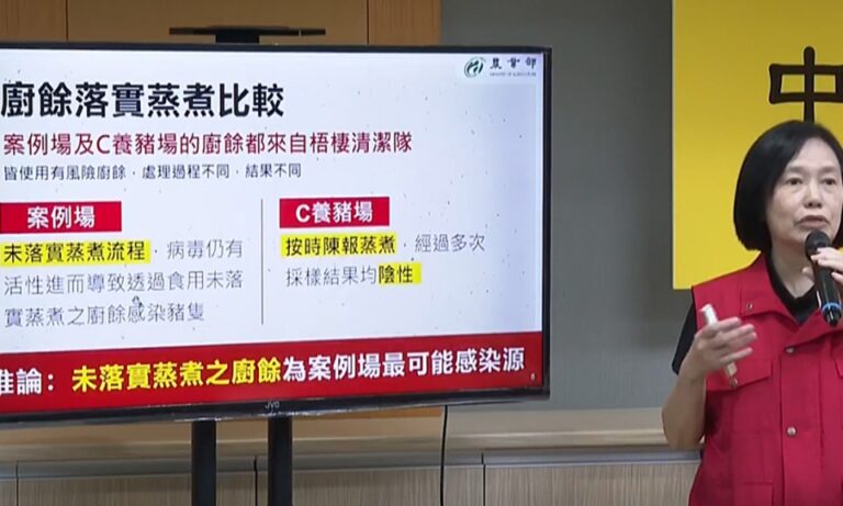 台中梧棲爆發非洲豬瘟,中央災害應變中心進行第三輪疫調,也是最關鍵的時間點,就在3日召開記者會,持續關注案場及關聯場,並根據疫調小組調查結果,結至目前異常的只有台中的案例場,並且也根據調查顯示案立場廚餘來源的分流跟管理出了問題,推論可能性最高的感染源是來自未落實蒸煮廚餘。