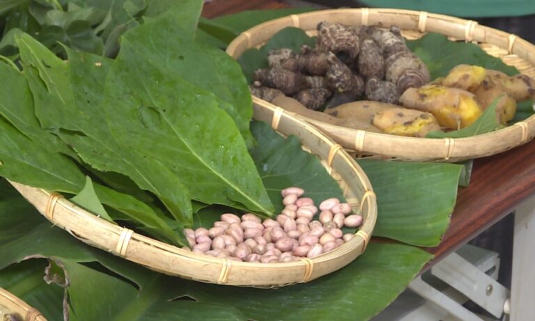 長者仔細地剝著芋頭、說著自己的母語、分享兒時的飲食經驗。
