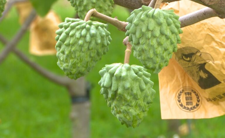 台東縣的鳳梨釋迦從10月開始陸續結果,產期可延續到明年清明節前,第一批年底上市的果實已經套袋,準備外銷到中國;台東縣府18日也邀請縣議員到卑南鄉鳳梨釋迦包裝廠視察,農民也希望透過改良除蟲品管流程,徹底解決粉介殼蟲害問題。