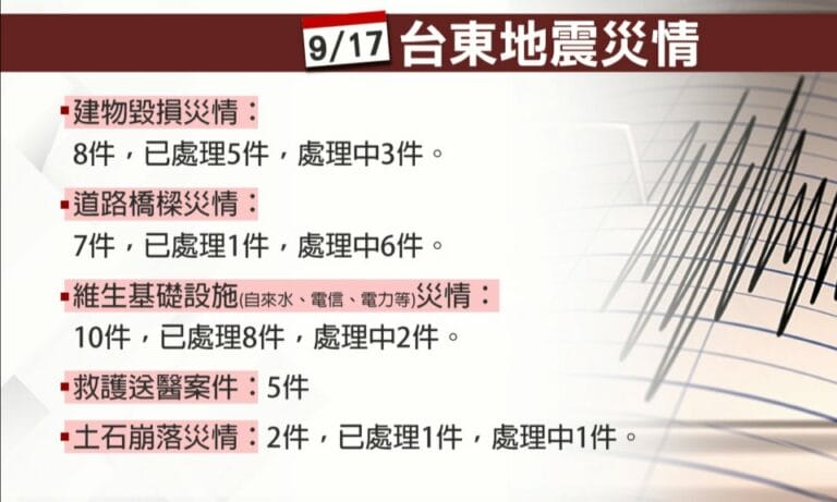 17、18號,台東縣傳出多起地震災情。