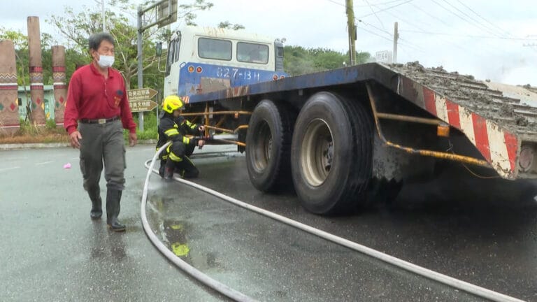 鶴岡拖板車輪胎起火引爆炸 所幸無人傷亡