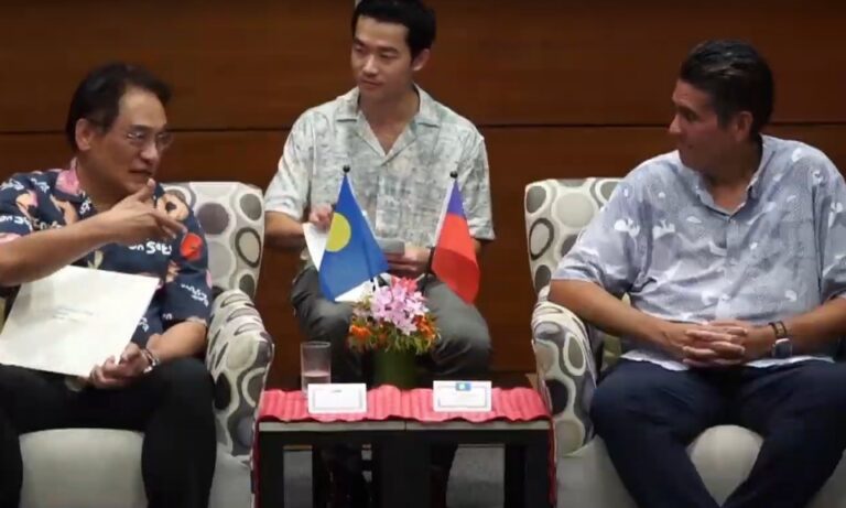 台特使團拜會惠恕仁 曾智勇送上排灣連杯