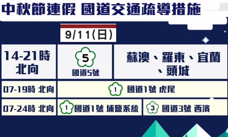 生活 中秋 收價 路況 車潮 估周日收假北返車多! 國1下午恐塞到晚上 15 中秋節連假第二天,根據高公局監測,截至下午三點,交通量有56.2百萬車公里,預估整天交通量會來到108百萬車公里,大致還算順暢,只有在內湖到汐止交流道及宜蘭到頭城有車多情形。 2022-09-10 19:07