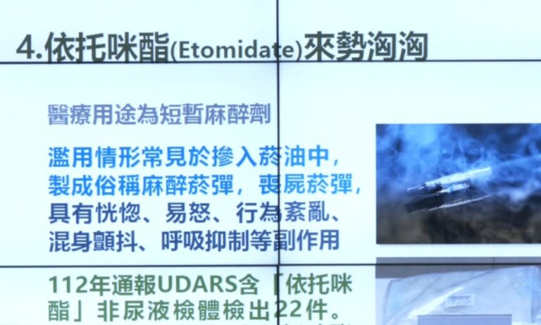 高檢署發布毒情分析警示 依托咪酯通報暴增