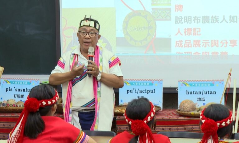 在講師的帶領下,一同吟唱布農族語古調,為了傳承原民文化,彰化地區的族語老師,在花壇國小辦理「原藝啟航」文化推廣活動,課程包含阿美族、布農族以及泰雅族文化介紹,除了讓原住民孩子更認識自己的族群之外,也讓非原民的學生一同學習,落實全民原教。