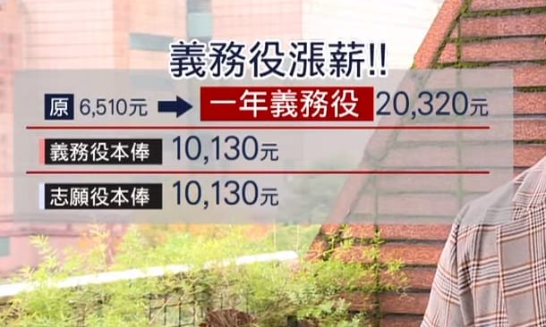 政經 都會 志願役 服役 義務役 薪水 調薪 兵役制度大變革 立委籲同步調整志願役薪資 285 總統 蔡英文說:「以二兵為例,我們會將未來義務役的薪資,包含保險和餐食費,將大幅提高到26,307元。 2022-12-29 19:03