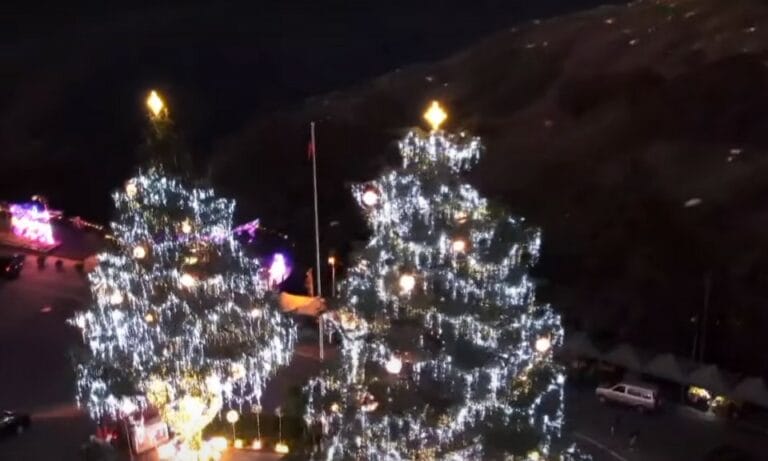 在眾人的祝福下,新人佳偶溫馨進場,參山國家風景區管理處主辦2025雲端上的婚禮,來自香港、新加坡等各個地方12對新人,在適逢櫻花盛開的時刻,選定梨山福壽山農場千櫻園,共同見證愛的誓約,除了創造滿滿甜蜜回憶,還特別準備鑽戒摸彩,贈送給幸運佳偶。