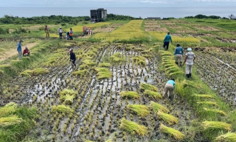 收割 梯田 港口部落 花蓮 農作 【噶瑪蘭族語新聞】降雨泥濘機器難行 人工搶收金黃稻 0 稻田土地泥濘,割稻機進入幫助收割,但幾度受困田中,稻農憂心無法完割下,特別請族人跟志工以人工的方式,彎腰、雙腳還陷入泥土裡進行割稻。 2022-07-12 16:02