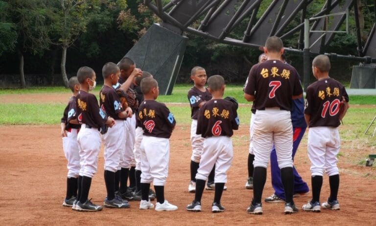 小球員認真進行傳接球訓練,這是台東縣南迴地區唯一有少棒隊的大溪國小,今年在25屆傳福盃拿下軟式組金牌,更是學校首座全國賽獎盃,不過,台東南迴地區,運動資源有限,許多小球員球具用到破損了還在使用,多良村長跟善心人士合資,特別購買棒球裝備,捐贈給大溪國小。