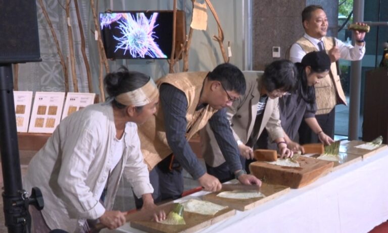 拿起木製槌子、輕輕敲打樹皮,在看樹皮慢慢延伸散開,由國立台灣史前文化博物館舉辦的《打樹成衣-南島記憶與文化連結》特展,在22日在文化部藝廊正式展開。