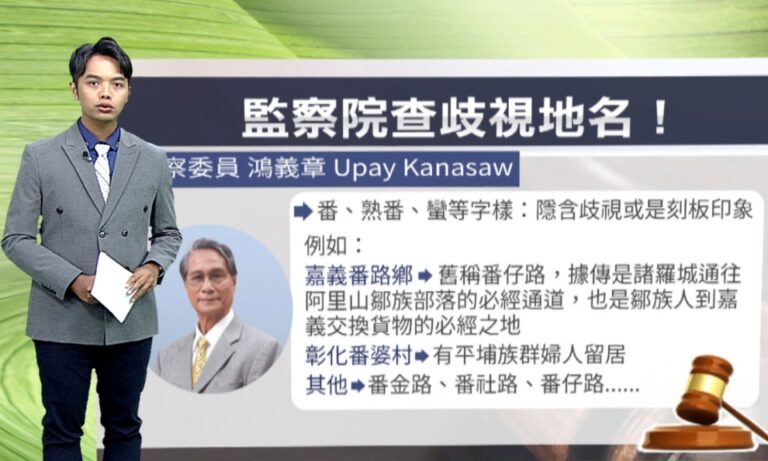 社會 歧視疑慮調查 監察院 鴻義章 多縣市路名引歧視疑慮 監委要求全面清查 78 監察委員鴻義章申請調查,指出像是「番」、「熟番」、「蠻」等詞彙,是用在道路命名,恐怕隱含歧視或是刻板印象。 2025-09-04 12:10