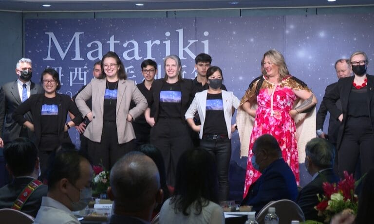 政經 教文 南島民族 南島語族 台紐交流 商業合作 文化交流 毛利人 毛利新年 紐西蘭 台紐連四年合慶毛利新年 深化兩國合作關係 76 穿著族服的青年,為毛利人戴上編織手環,而毛利人回送項鍊,透過交換禮物為台紐之間的交流表達感謝。 2022-06-25 12:05